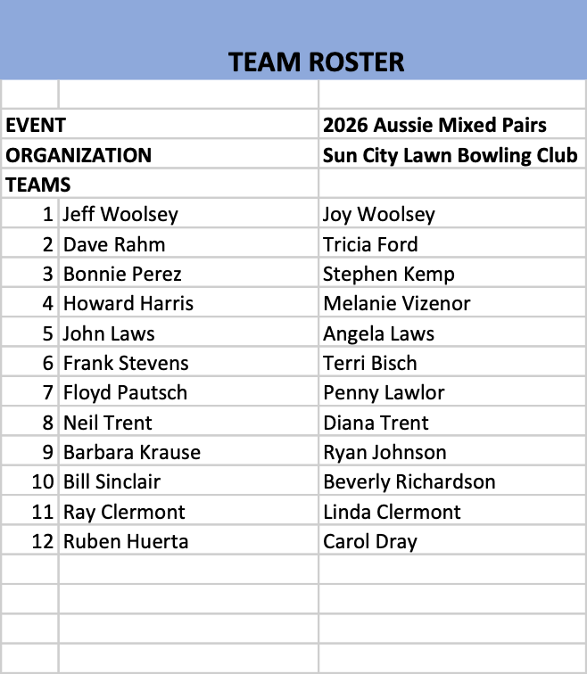 Format 2-4-2 / Three 12 end games Scoring: 3/win, 1/tie, 0/loss, max 10 plus points Entry Fee: $40 (per team) (Max 20 teams)